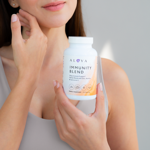 Alaya Immunity Blend supplement bottle on a clear background #hide