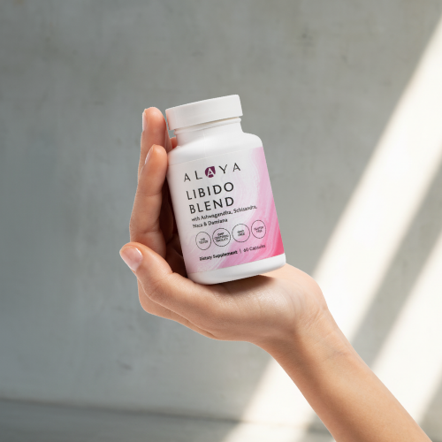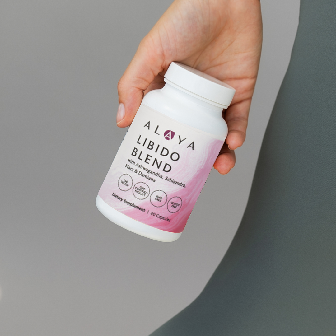 Alaya Libido Blend supplement bottle on a clear background #hide