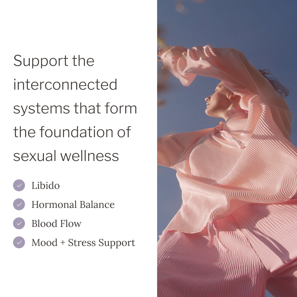 A targeted blend of botanicals traditionally used to support the interconnected systems behind sexual wellness, including healthy libido, hormone balance, circulation, and overall well-being, designed for women navigating stress, shifting hormones, or changes in desire.*