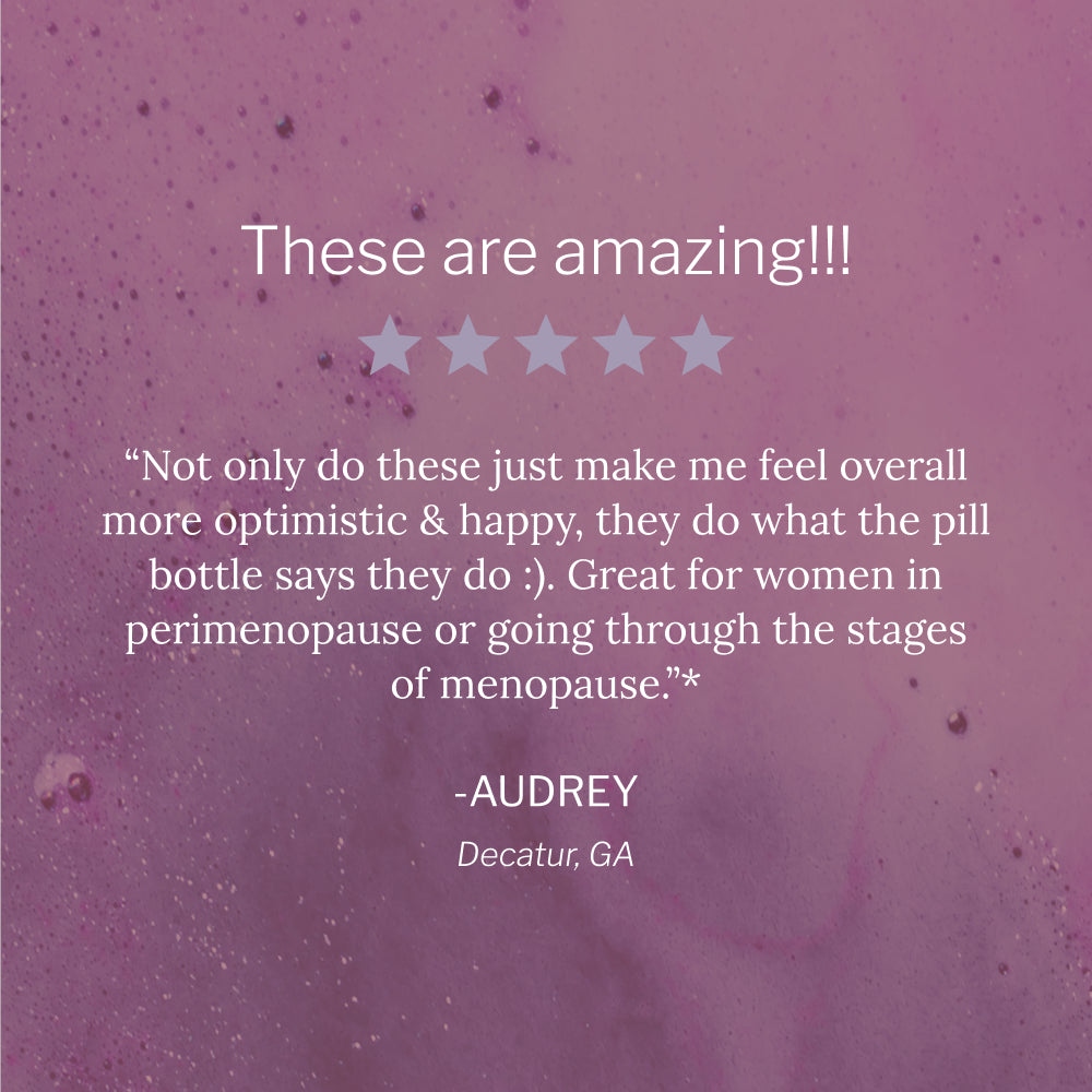 Not only do these just make me feel overall more optimistic & happy, they do what the pill bottle says they do :). Great for women in perimenopause or going through the stages of menopause.