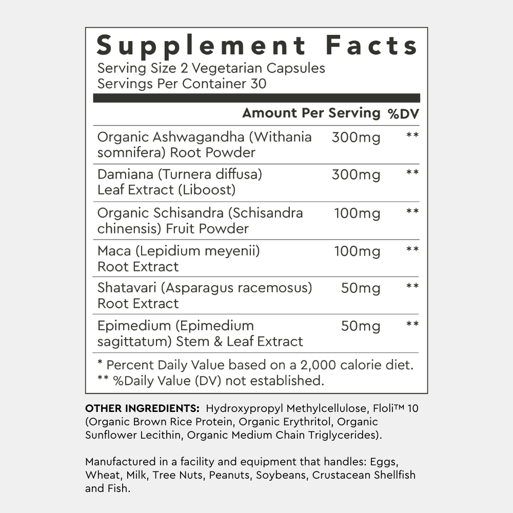 Formulated with botanicals rooted in Ayurvedic and Traditional Chinese herbal practices, this blend supports the interconnected systems that influence libido, helping your body maintain: