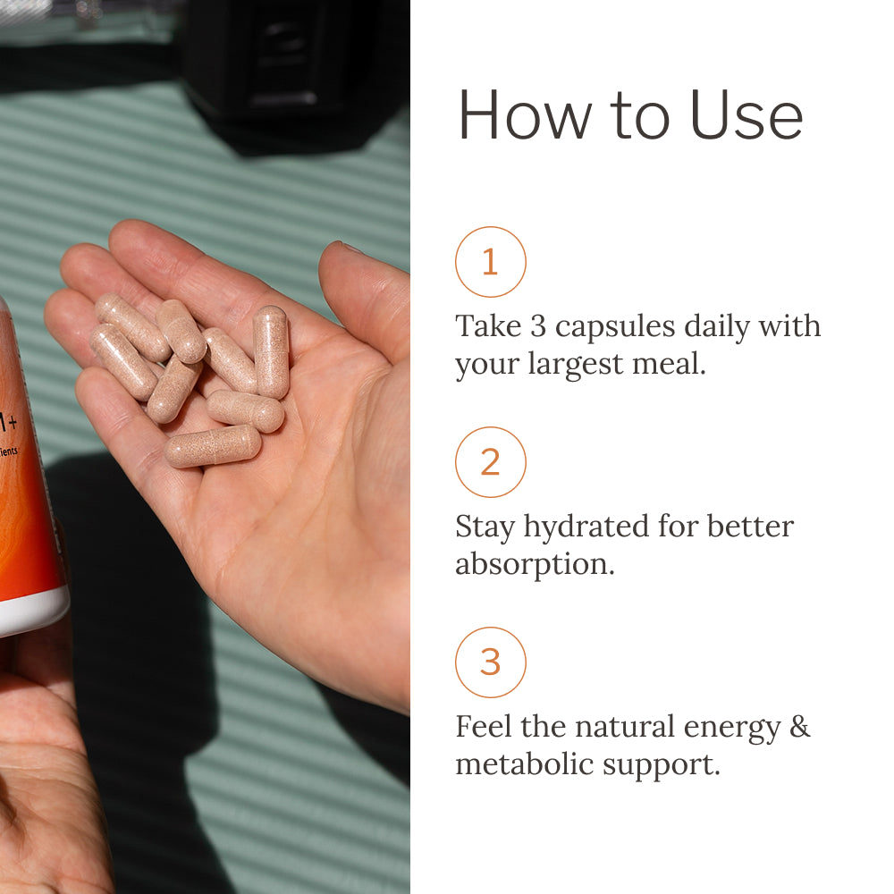Metabolism+ is a plant-based supplement formulated to support your body’s natural metabolic processes.