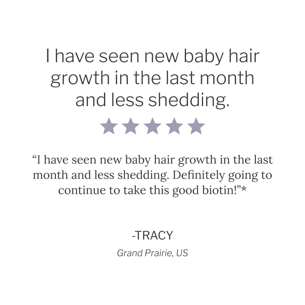 Biotin can support hair by strengthening the hair follicles, promoting healthy hair from the root, and improving the overall condition and thickness of your hair.